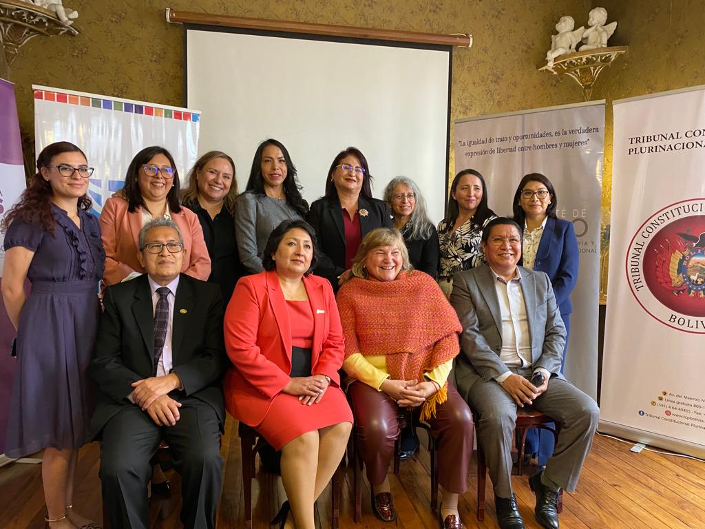 Las representantes de ONU Mujeres junto al Comité de Género del Órgano Judicial y Tribunal Constitucional Plurinacional acordaron una propuesta desde el Órgano Judicial para la construcción de una Agenda Conjunta para el fortalecimiento de las mujeres indígenas y del área rural en materia de derechos humanos y acceso a la justicia en materia agroambiental.