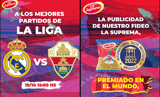 “La Suprema festeja su premio internacional presente en el partido del campeón de Europa, Real Madrid, y en partidos de futbol de la liga española. Tendremos espacios en las pantallas del campo de juego con nuestra marca de fideos y el premio del International Taste Institute en el partido del campeón europeo y en otro del Atlético de Madrid”, sostuvo el gerente general de La Suprema Juan Trigo.