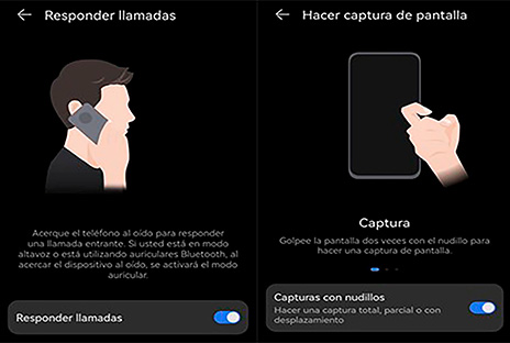 – Toma una captura de pantalla de manera diferente. Puedes usar un sencillo gesto con los nudillos para realizar una captura de pantalla o grabación de video sin necesidad de presionar una combinación de botones o buscar la opción en los ajustes. Para activar este gesto solo debes ir a los Ajustes > Funciones de accesibilidad > Accesos directos y gestos > Hacer captura de pantalla >Activar.