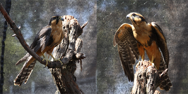 Sobre los halcones reabilitados Rojas dijo que uno es el halcón común o cernícalo (Falco sparverius) también conocido como Killi Killi, ingresó al espacio edil el 20 de julio de 2021 tras su rescate por parte de la Policía Forestal y de Medio Ambiente (Pofoma), en un domicilio particular ubicado en la plaza Ballivián de la zona 16 de julio en El Alto.