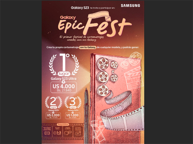 La telefónica Samsung en Bolivia lanza la primera edición del Galaxy Epic Fest premiará aquellos productos audiovisuales realizados con un dispositivo móvil Galaxy y hacer un cortometraje de uno a tres minutos.