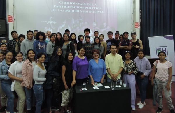 A su turno, la decana de la facultad de Humanidades y Ciencias de la educación, María Virginia Ferrufino Loza, dijo que en la historia de Bolivia hubo mujeres que lucharon por los derechos de mujeres valientes, luchadoras, mujeres intelectuales, mujeres que tuvieron y tienen una actuación destacada “y debe ser reconocida, cuando hablamos de las mujeres en nuestra historia hablamos también de gremialistas, cocineras, floristas, recoveras, todas han tenido un concurso importante en la historia de nuestro Estado”.