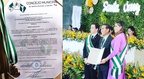 En oportunidad de celebrarse los 213 años del grito libertario del departamento de Santa Cruz, mediante ley autonómica municipal 1633 se otorgó la Medalla al Mérito Municipal a la Asociación de Productores de Oleaginosas y Trigo (Anapo) por su aporte a su institución y a la cadena productiva del país.