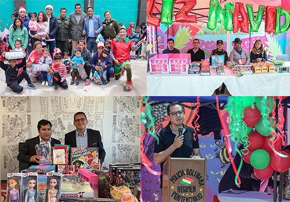Entre las instituciones beneficiadas con la donación de juguetes y refrescos se encuentran varios gobiernos municipales, cárceles de mujeres, las cámaras de Senadores y Diputados de la Asamblea Legislativa Plurinacional, como también las comunidades próximas a nuestras plantas industriales en Huari (Oruro) y Taquiña (Cochabamba), entre otras.