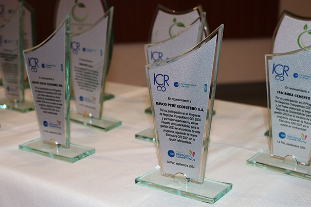 Para llegar a esta meta, Banco Ecofuturo participó del Programa de Negocios Competitivos GRI 2024, a cargo de ICR Systems & Management S.R.L. y su distinción obedece a que su Reporte de Sostenibilidad se ampara bajo los estándares del Global Reporting Iniciative (GRI) o Iniciativa de Reporte Global. Asimismo, el Banco recibió un segundo reconocimiento por haber diseñado un modelo de Sostenibilidad con integración de ODS´s priorizados, metas e indicadores de la Agenda 2030 de la ONU.