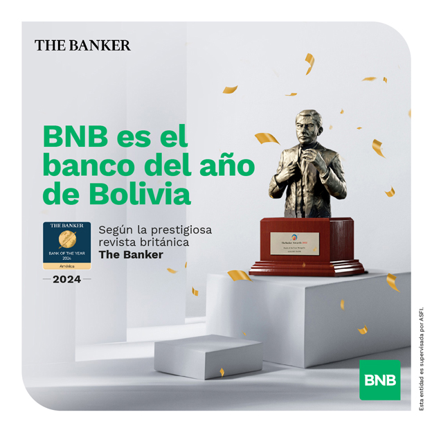 El panel de editores y especialistas de The Banker seleccionó al Banco Nacional de Bolivia (BNB) como el Banco del Año de Bolivia por sus destacadas iniciativas estratégicas, implementación de tecnologías avanzadas, desarrollo de productos, servicios innovadores y las mejoras continuas realizadas durante los últimos 12 meses.