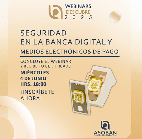 La Asociación de Bancos Privados de Bolivia (ASOBAN), junto a sus entidades agremiadas, iniciarán desde este miércoles 4 de junio la sexta serie de seminarios virtuales gratuitos con el objetivo de reforzar los conocimientos de la población en temas vinculados al sector financiero.