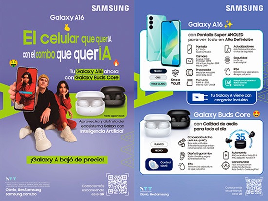 Samsung presenta sus smartphones más populares, el Galaxy A16, con los nuevos Galaxy Buds Core, en un combo atractivo que refuerza la experiencia del ecosistema Galaxy con inteligencia artificial (IA) integrada, estilo y un precio accesible.