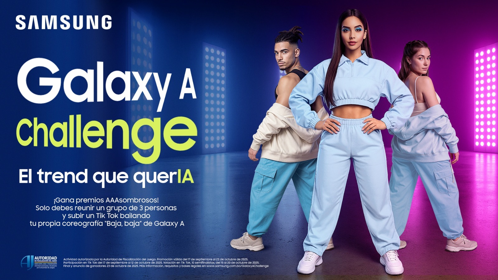 Un nuevo desafío de Samsung en Bolivia es el Galaxy A Challenge, una actividad a nivel nacional que invita a los usuarios a crear una coreografía original utilizando el audio oficial del reto, disponible en la cuenta de TikTok de Samsung Bolivia (@samsungbolivia).