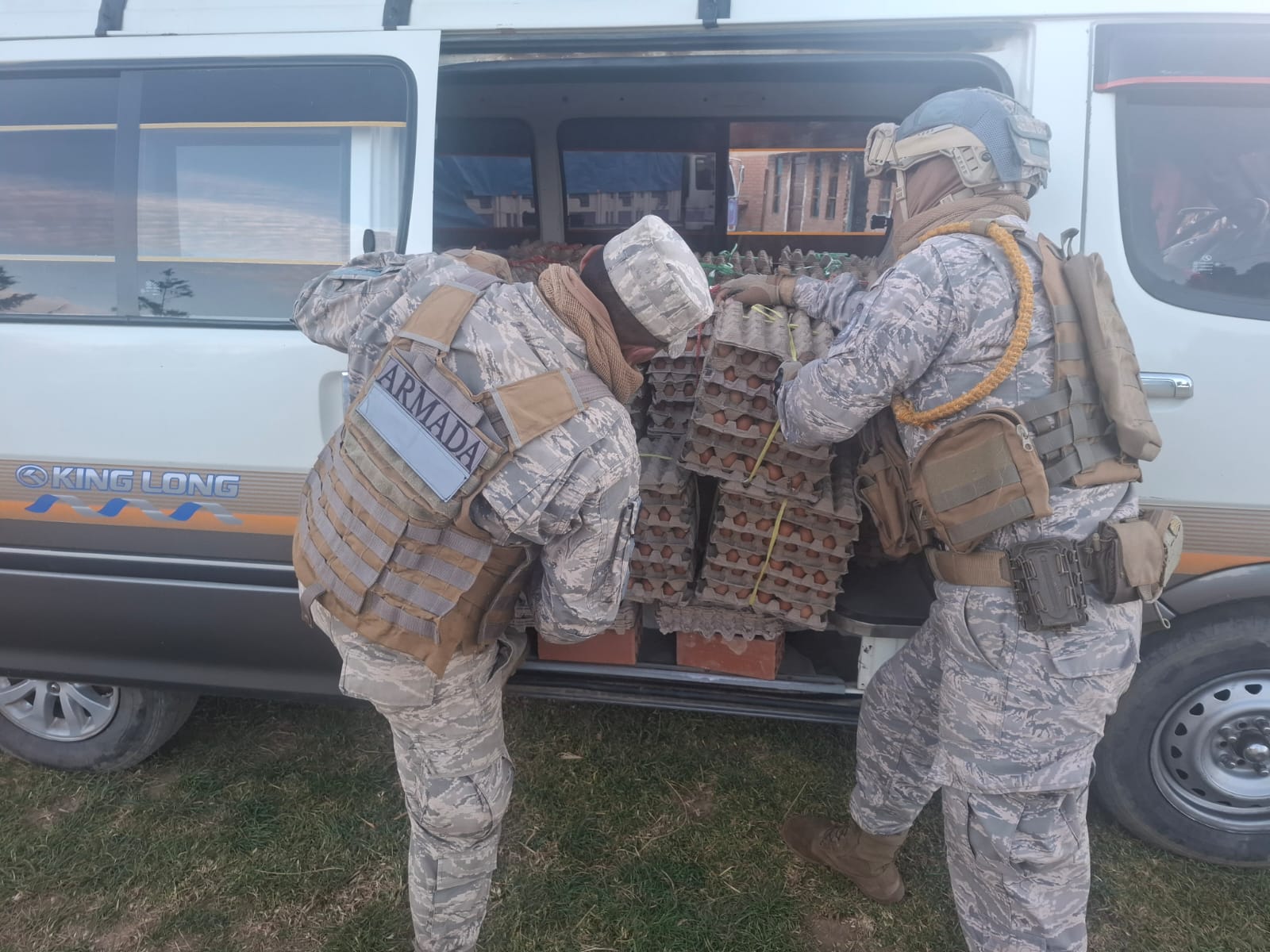 El Capitán de Navío DAEN. Alvaro Marcelo Bedregal Cáceres Comandante del Cuarto Distrito Naval “TITCACA”, informó que en el sector de Chaguaya, el personal naval interceptó el transporte irregular de 1.000 litros de diésel (Bs. 11.000), un camión con ganado ovino (Bs. 28.000) y más de 100 quintales de azúcar (Bs. 144.000); asimismo, el Batallón de Infantería de Marina IV “ALIANZA” comisó 700 maples de huevo, valuados en aproximadamente Bs. 86.400, transportados sin documentación legal.